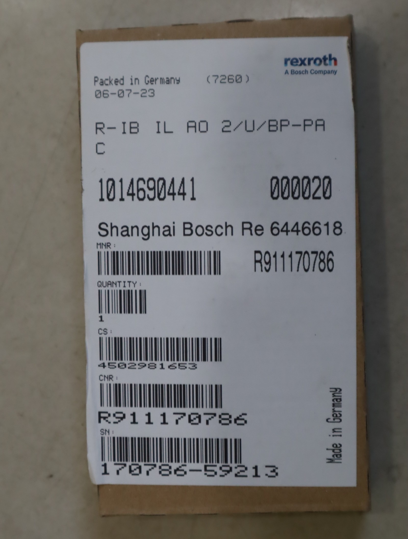 R911170786 R-IB IL RO2/U/BP-PRC 德国力士乐REXROTH驱动器