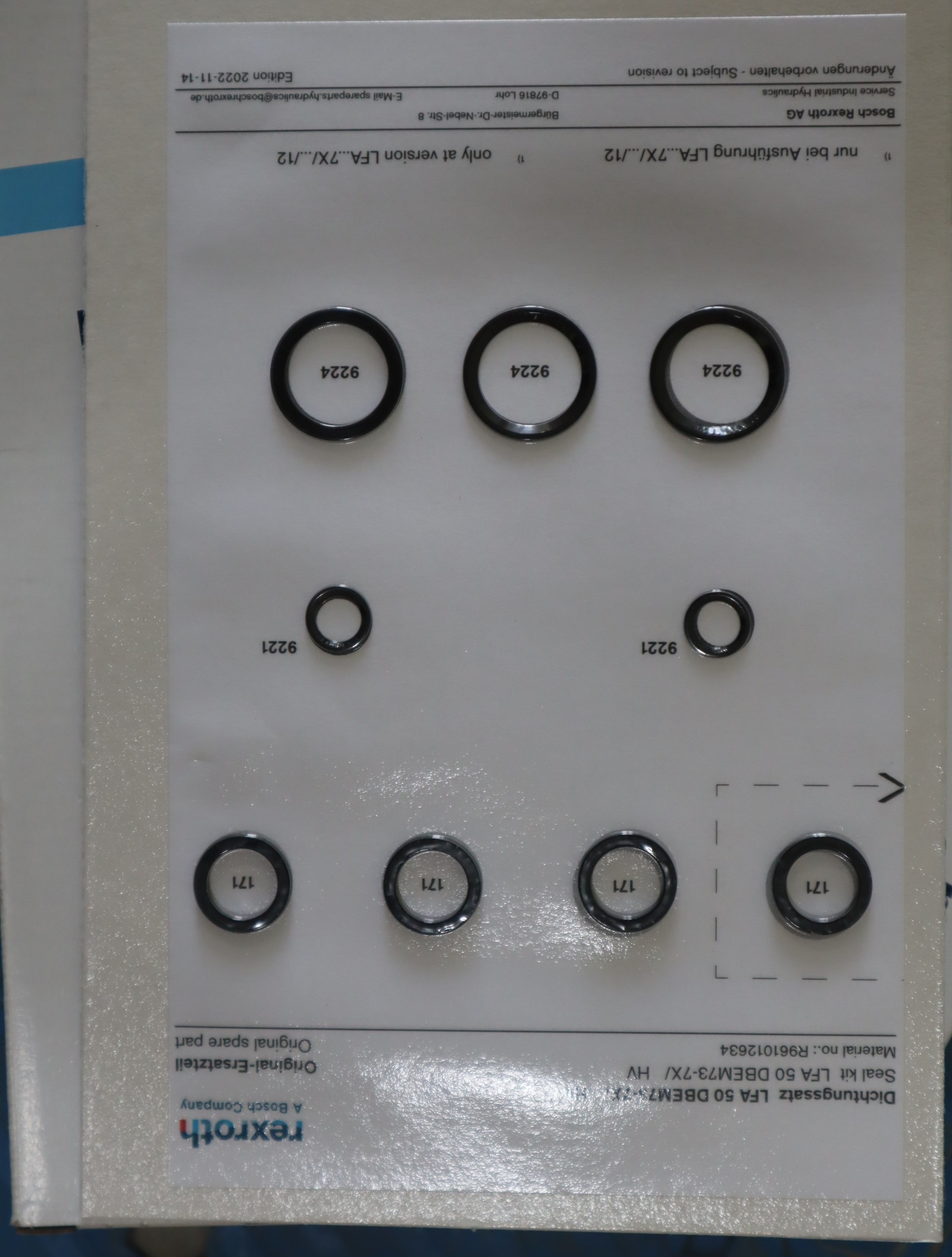 R961012634 LFA50DBEM73-7X/ 德国力士乐REXROTH插装阀盖板密封